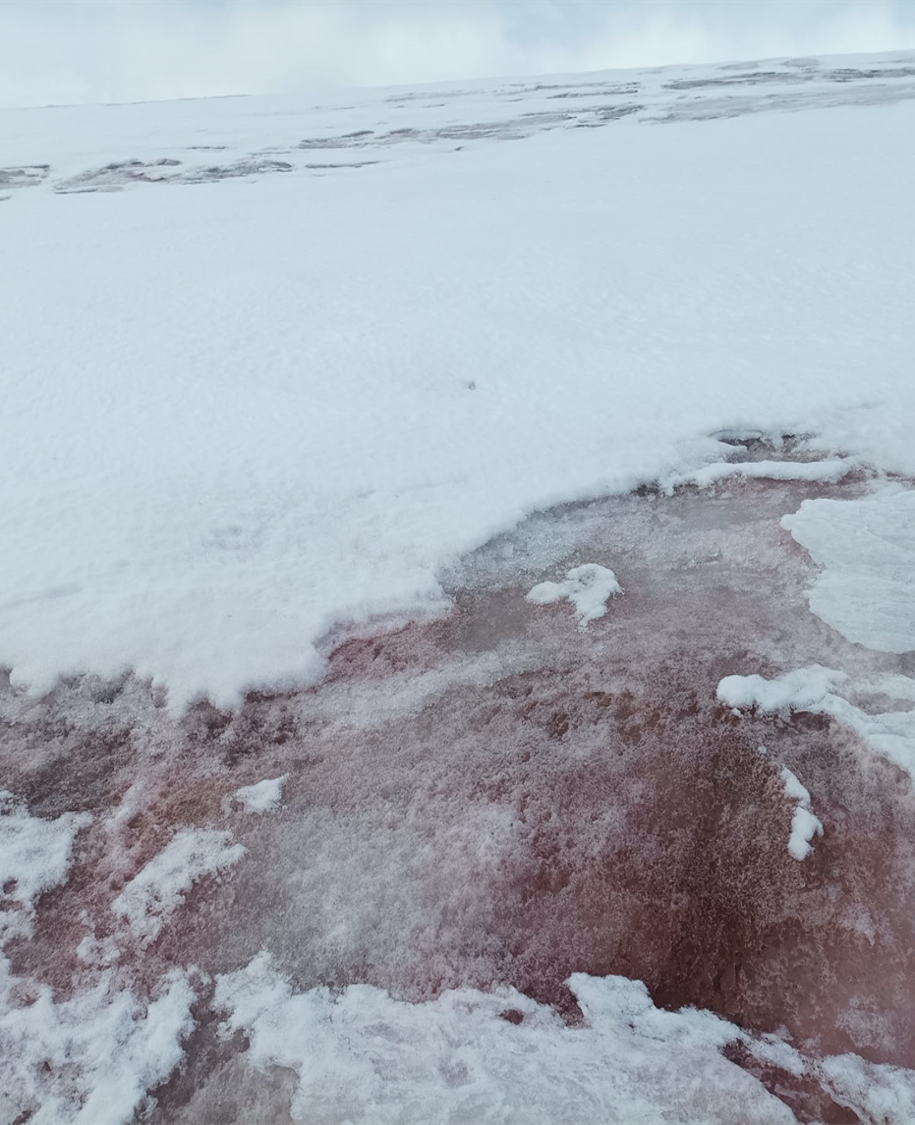 El estudio de la habitabilidad planetaria abarca las condiciones que permiten la existencia de vida, incluyendo la presencia de extremófilos, organismos que prosperan en ambientes extremos. La búsqueda de biofirmas, signos de vida, en planetas y lunas se centra en detectar condiciones propicias, como agua líquida, atmósferas protectoras y una temperatura adecuada. Imagen: Chlamydomonas nivalis en Glaciar Pirámides, Península Antártica.