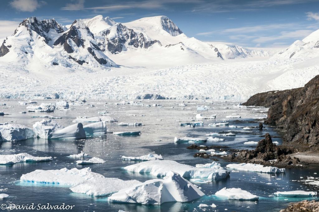 Estudio de la reflectancia del hielo antártico para entender procesos climáticos. Parametrización del albedo del hielo en la Antartida. Análisis de series temporales y patrones de decaimiento del albedo. Imagen: Frente de Glaciar Jonhson, Península Hurd isla Livingston.